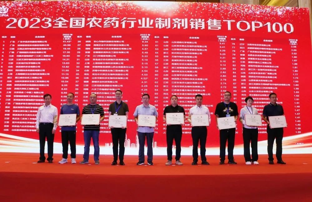 ? ? 潤揚(yáng)化學(xué)以3.41億元榮獲“2023全國農(nóng)藥行業(yè)制劑銷售TOP100”第五十一名。